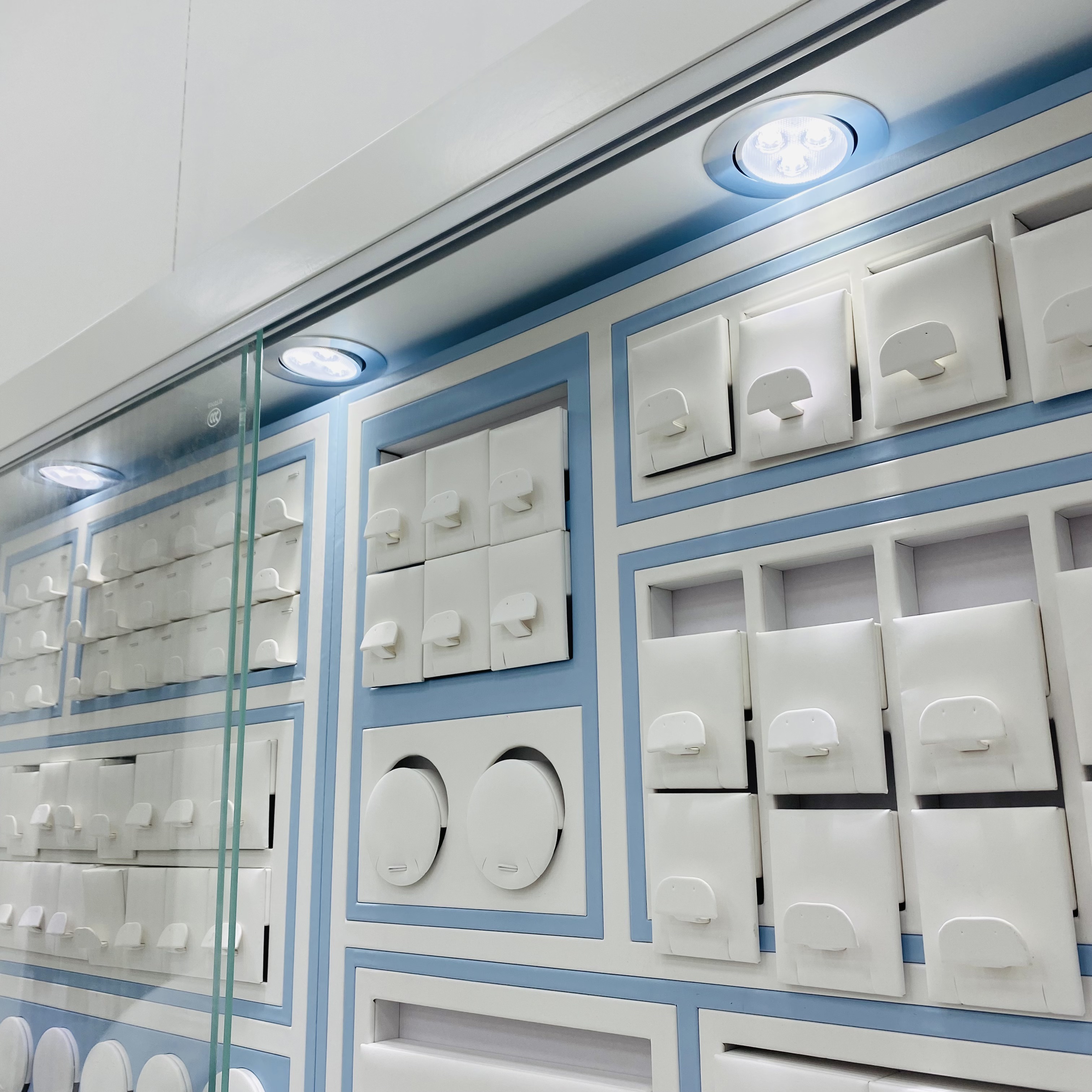 L'intérieur de l'armoire d'affichage est équipé d'un système d'éclairage professionnel, tel que des bandes de lumière LED ou des projecteurs, qui peuvent mettre en évidence l'éclat et les détails des bijoux et améliorer l'effet d'affichage. Le système d'éclairage peut également être ajusté en fonction des caractéristiques des bijoux et l'affichage doit obtenir le meilleur effet visuel.