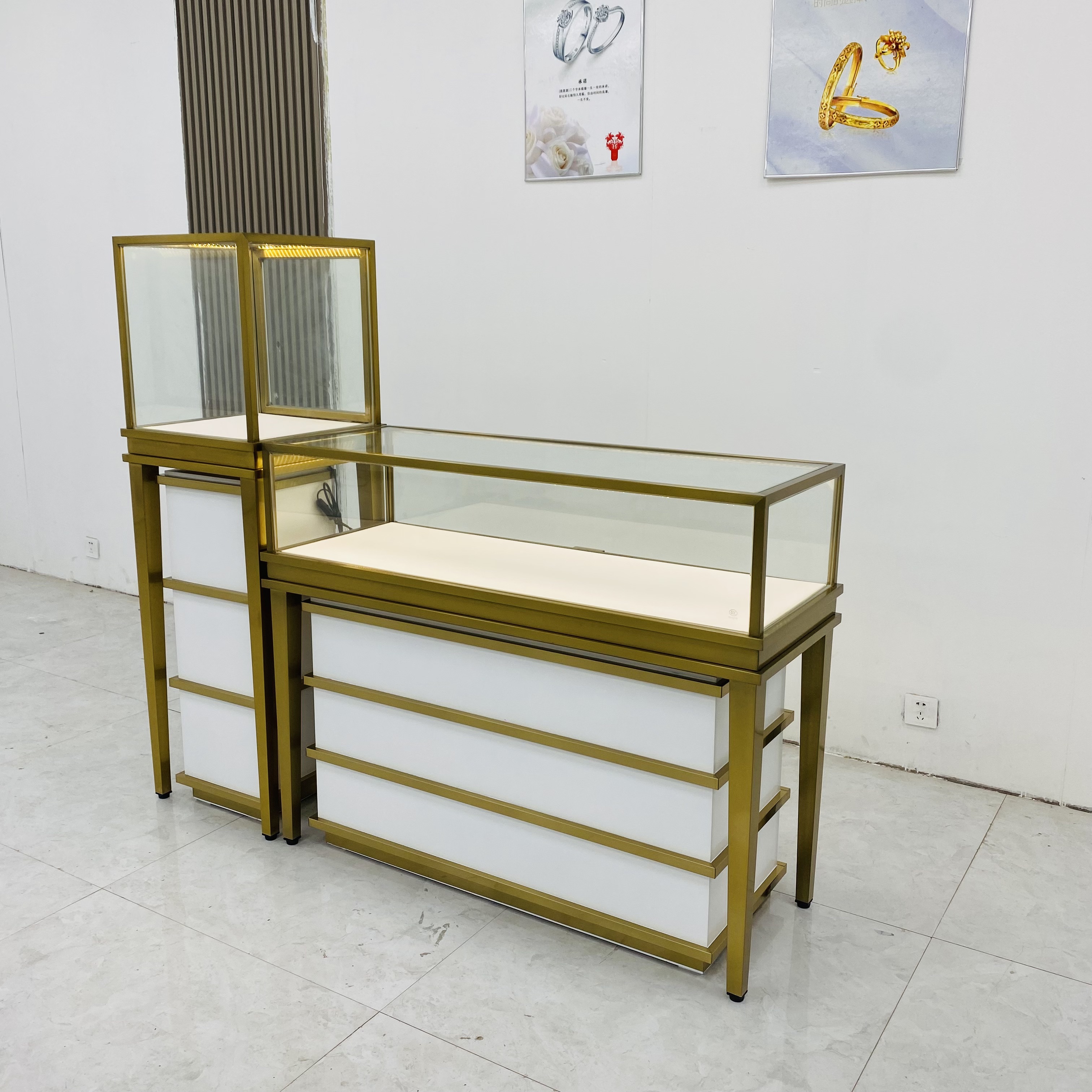 4. Système d'éclairage: les systèmes d'éclairage de haute qualité peuvent mettre en évidence l'éclat et l'éclat des bijoux et améliorer les effets visuels. Le système d'éclairage utilise généralement des sources de lumière LED, qui présentent les avantages de l'économie d'énergie, de la protection de l'environnement et de la longue durée de vie.