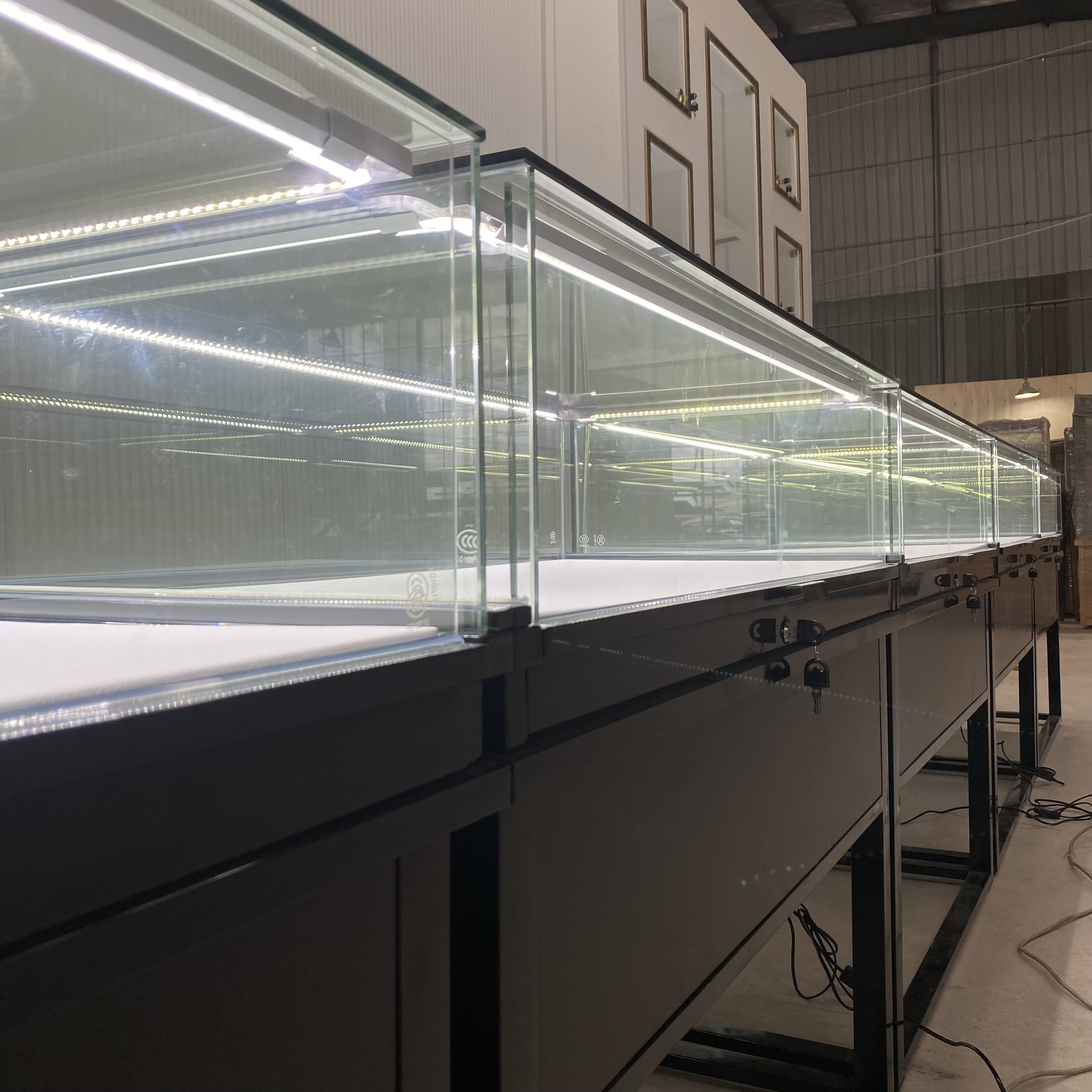 Jinxi Hongzhan Furniture Co., Ltd. est une entreprise spécialisée dédiée à la conception et à la fabrication de vitrines de gâteaux, de présentations de pain, d'armoires de congélation, de bijoux en verre et d'expositions de magasins de vêtements, avec une usine couvrant 2 000 mètres carrés. Notre expertise réside dans les techniques avancées du travail du bois, de la peinture et de la fabrication en acier inoxydable, complétées par une équipe de conception chevronnée. En tant qu'usine complète se concentrant sur les écrans de milieu à haut, nous avons perfectionné notre métier sur 18 ans pour assurer la plus grande satisfaction du client.