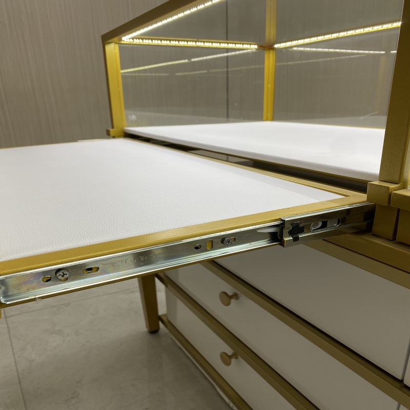 Dans les bijouterie, les armoires de bijoux de luxe légères sont l'équipement de base pour afficher des produits de bijoux. Grâce à des armoires d'affichage bien conçues, l'éclat et l'éclat des bijoux peuvent être mis en évidence, attirant l'attention des clients et améliorant les performances des ventes. Dans le même temps, la conception élégante et les excellentes performances des armoires d'affichage de bijoux de luxe légères peuvent également améliorer l'image globale et la note du magasin, offrant aux clients un environnement de magasinage confortable et haut de gamme.