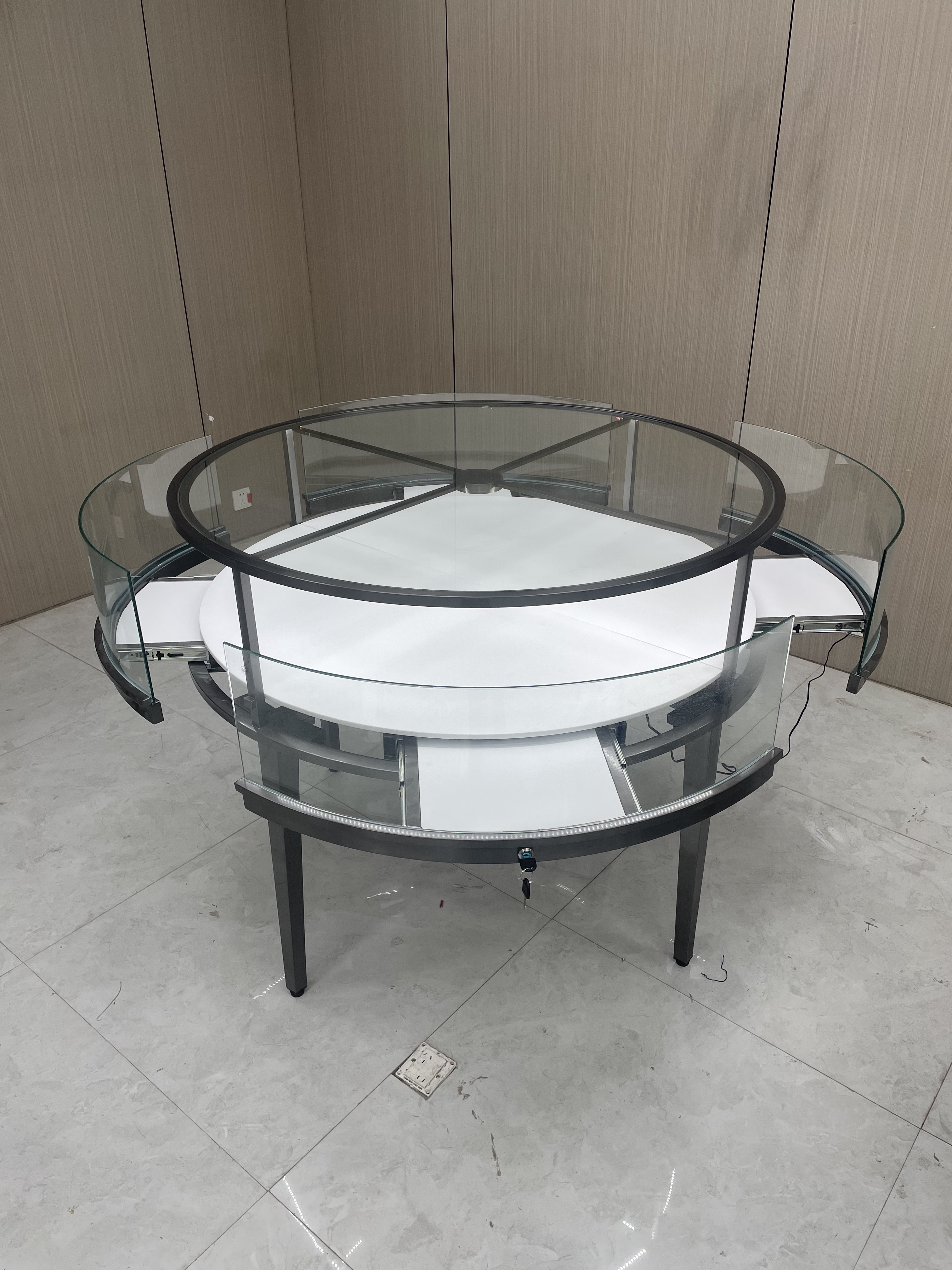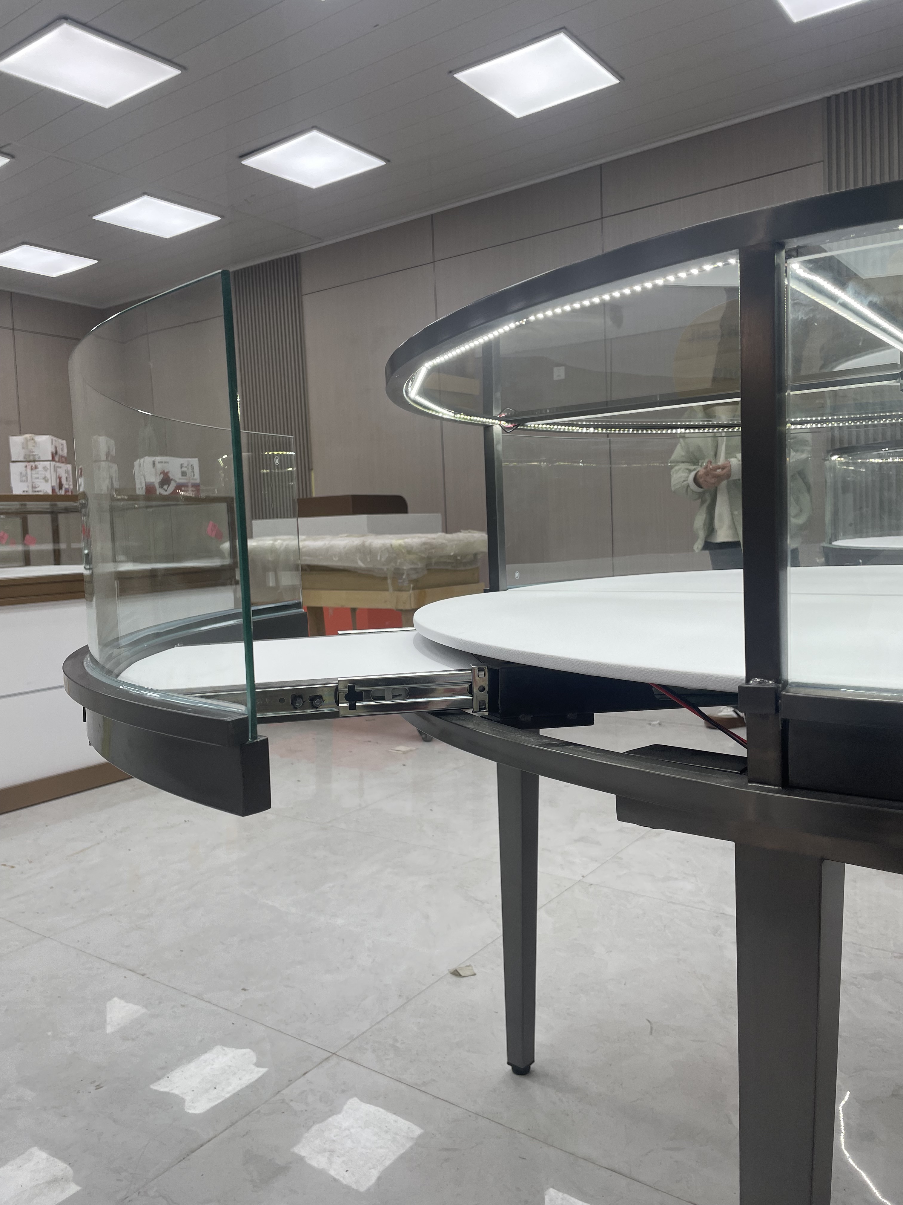 L'armoire à exposition de bijoux simple est une solution élégante et élégante pour présenter des bijoux. Avec sa conception ronde et ses matériaux durables, il apporte une touche moderne à n'importe quel espace de vente au détail.