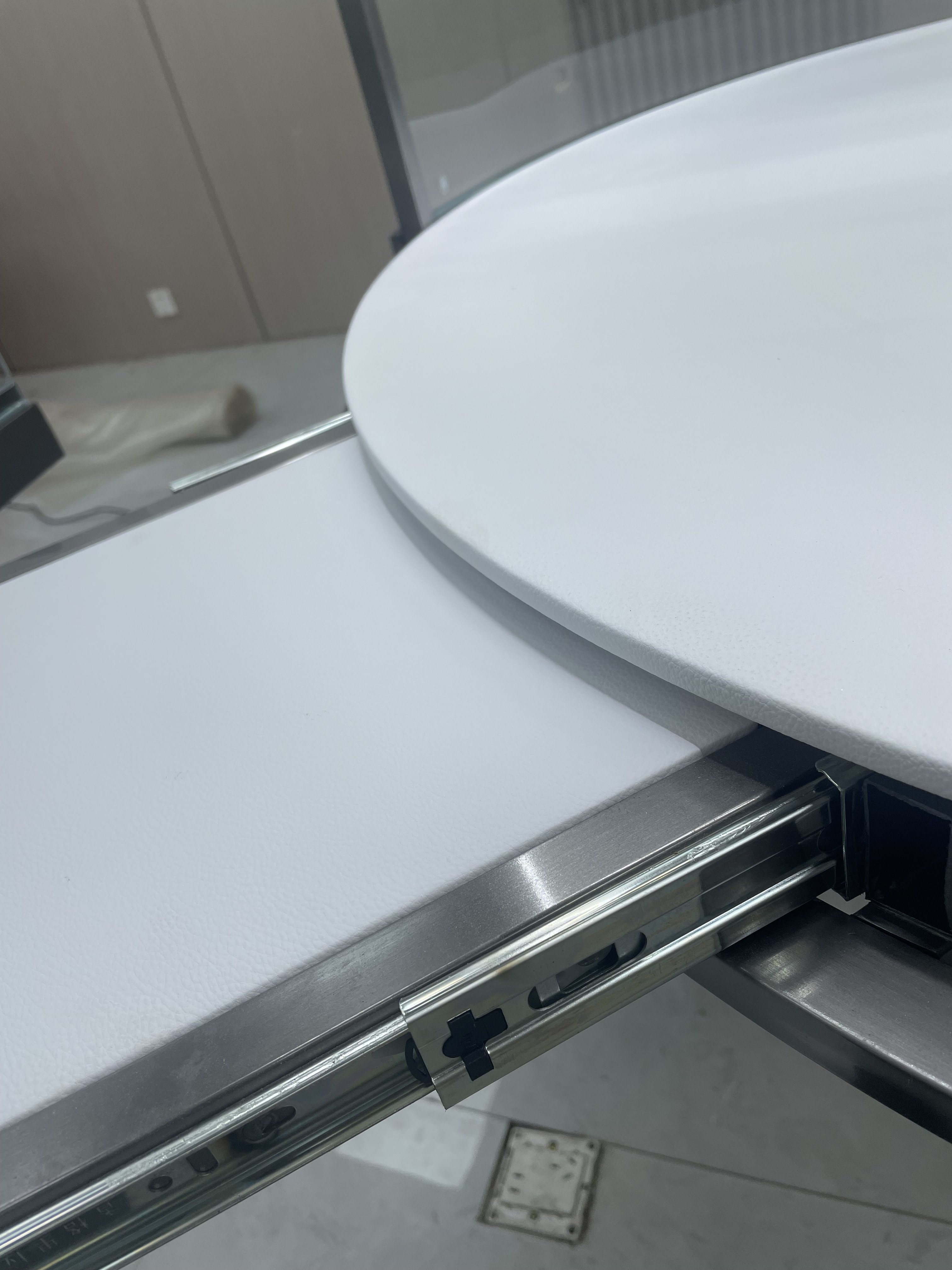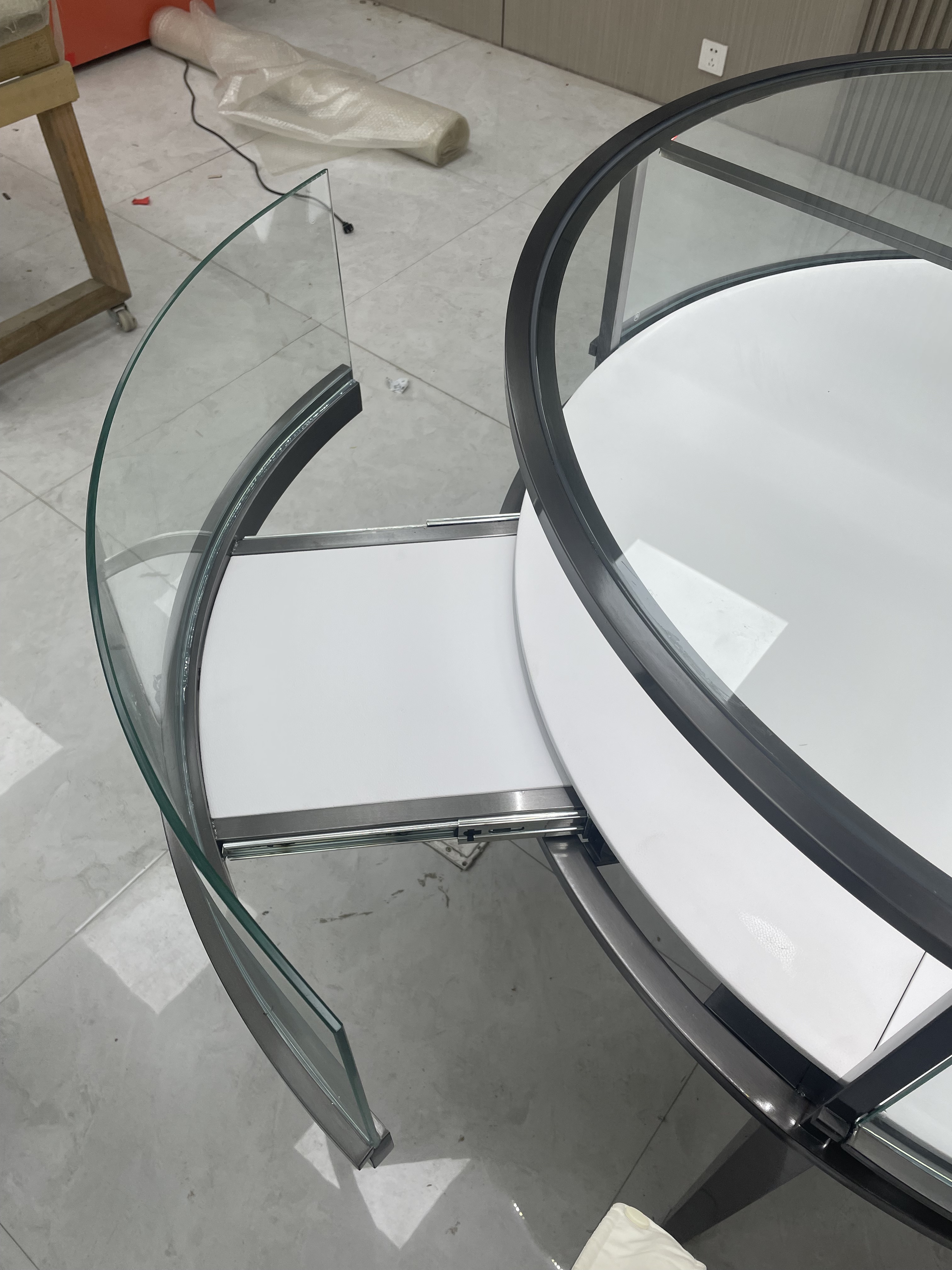 R: L'armoire est ronde, avec des dimensions de 120 cm × 120 cm × 95 cm, offrant un espace suffisant pour les bijoux tout en maintenant une apparence élégante et compacte.