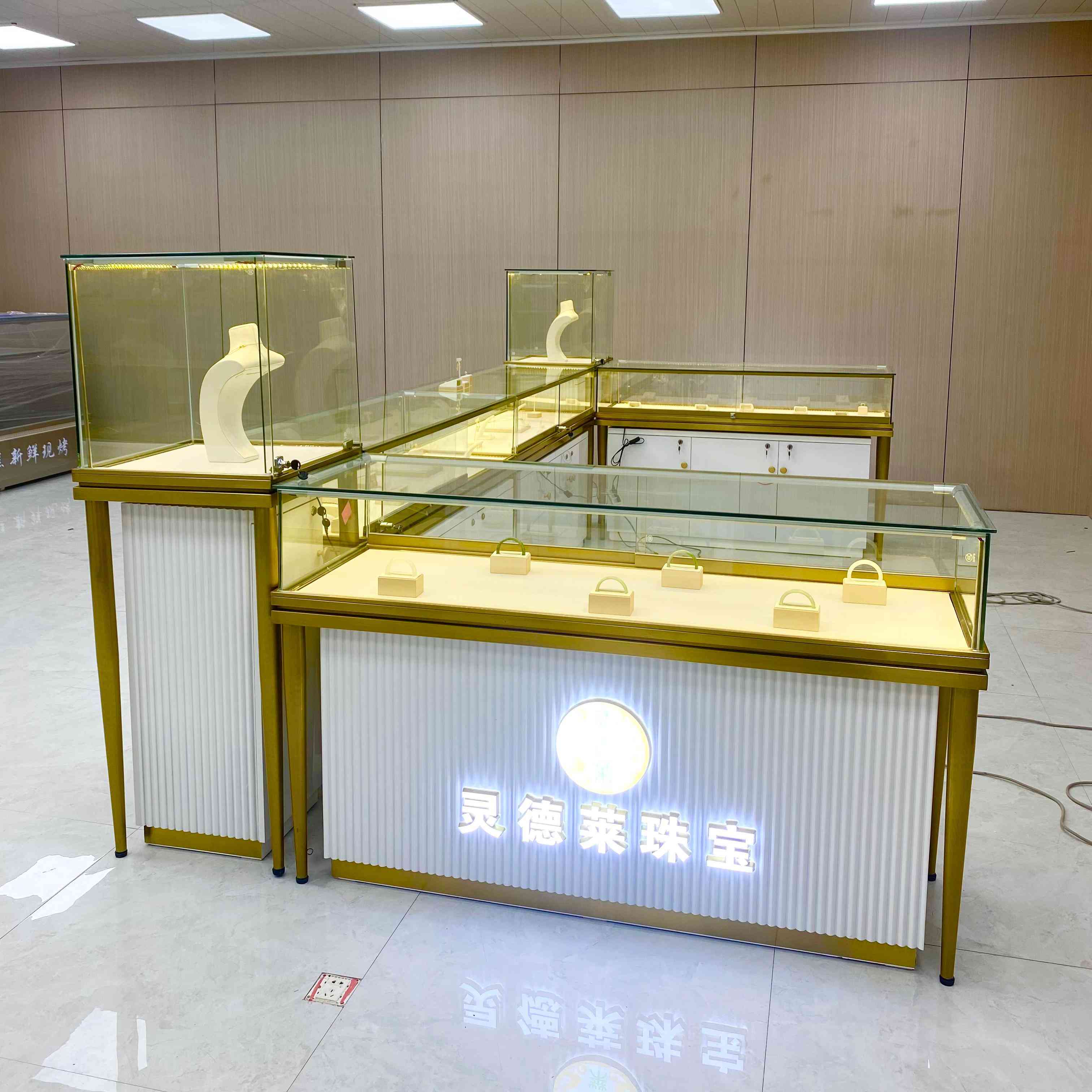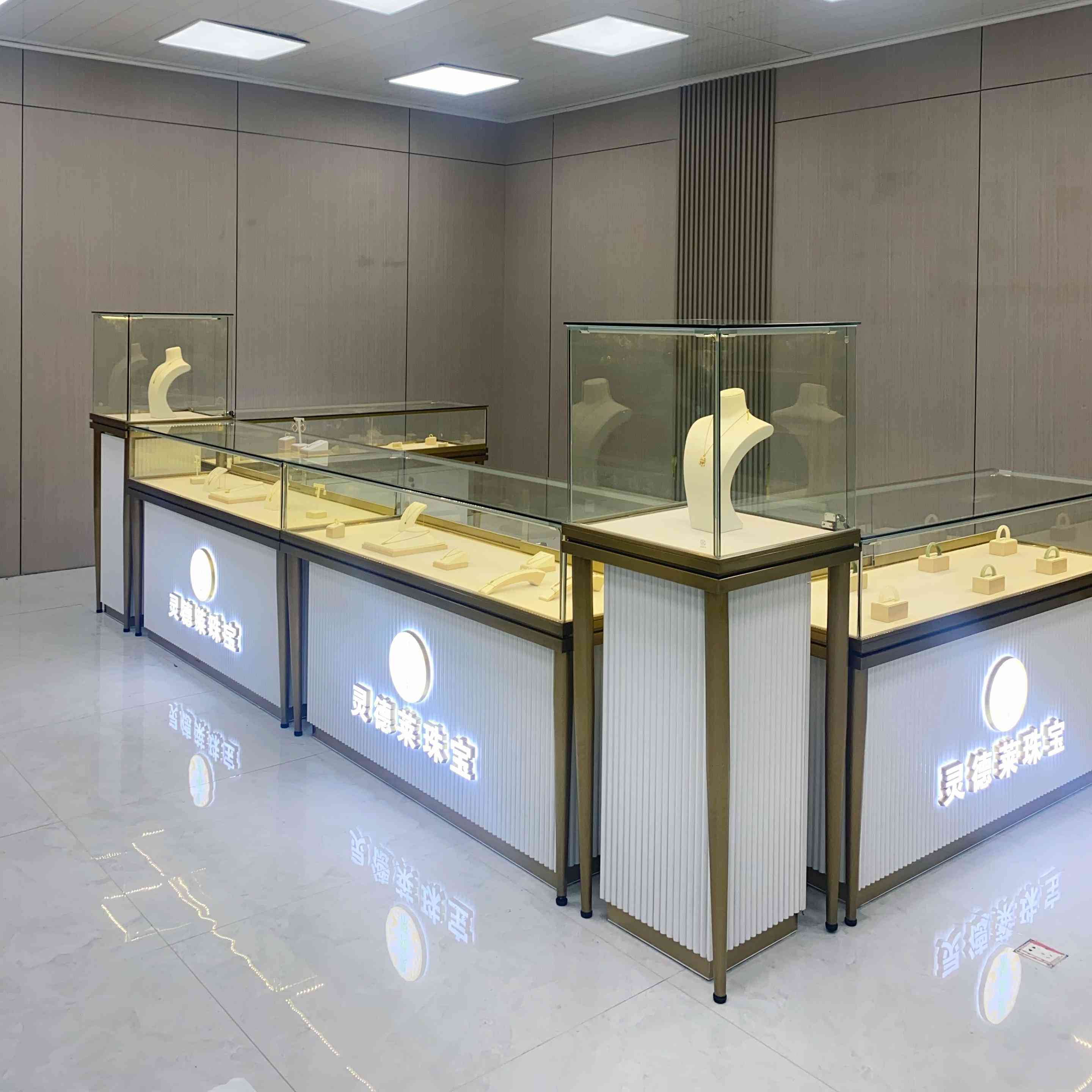 Nous avons une armoire de bijoux en verre personnalisée