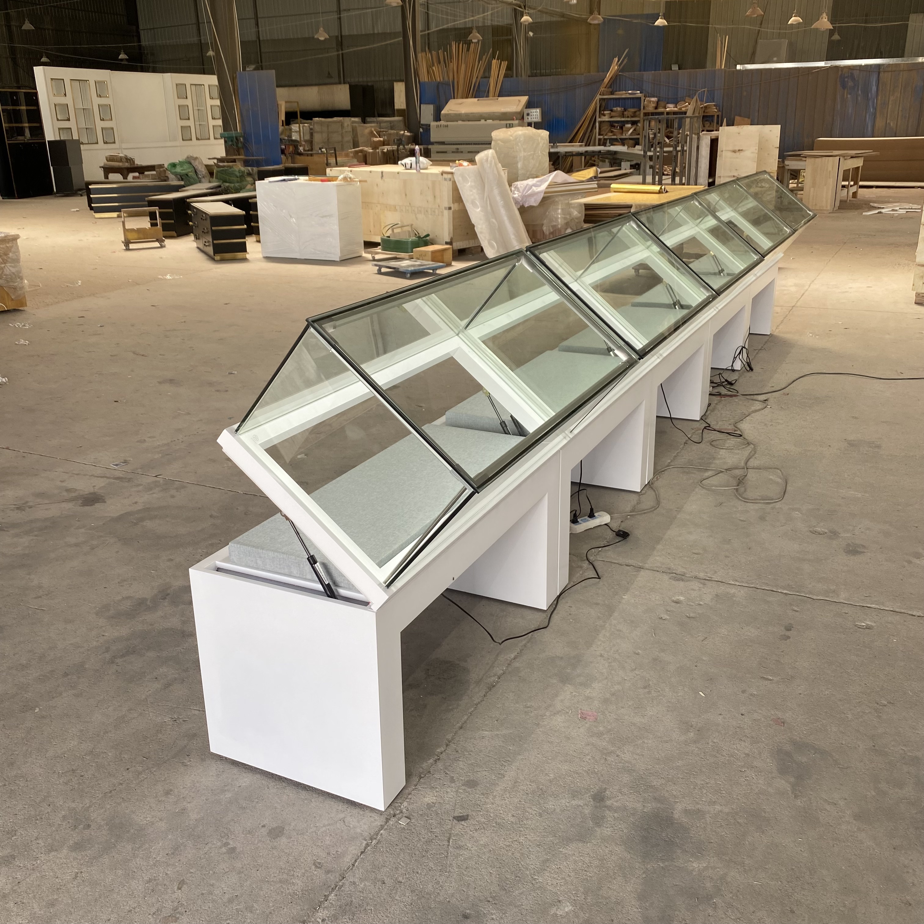 Jinxi Hongzhan Furniture Co., Ltd. est une entreprise dédiée engagée dans la conception et la fabrication de stands d'affichage à gâteaux, les stands de pain, les vitrines de stockage à froid, les étuis en verre pour les bijoux et les appareils de magasin. Notre usine comprend 2 000 mètres carrés. Nous possédons une expertise dans la menuiserie, la peinture et la production en acier inoxydable. Notre équipe de conception est hautement qualifiée. En tant qu'usine complète spécialisée dans les étalages de milieu à haut de gamme, avec 18 ans d'expérience et un engagement envers la satisfaction des clients, nous avons poli nos capacités à offrir un service supérieur.